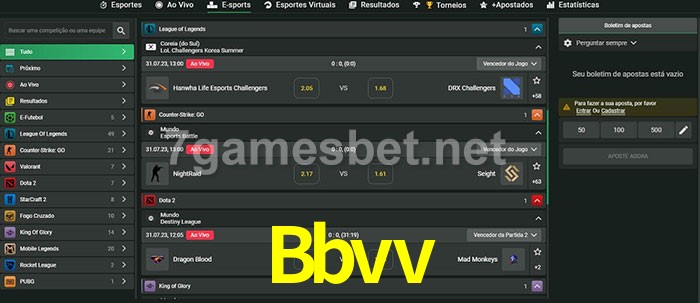 O Bbvv oferece uma grande seleção de opções de apostas em e-sports com probabilidades competitivas